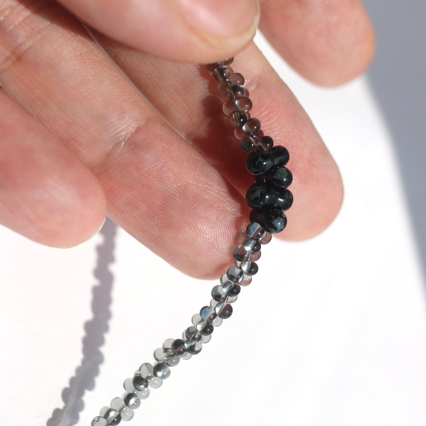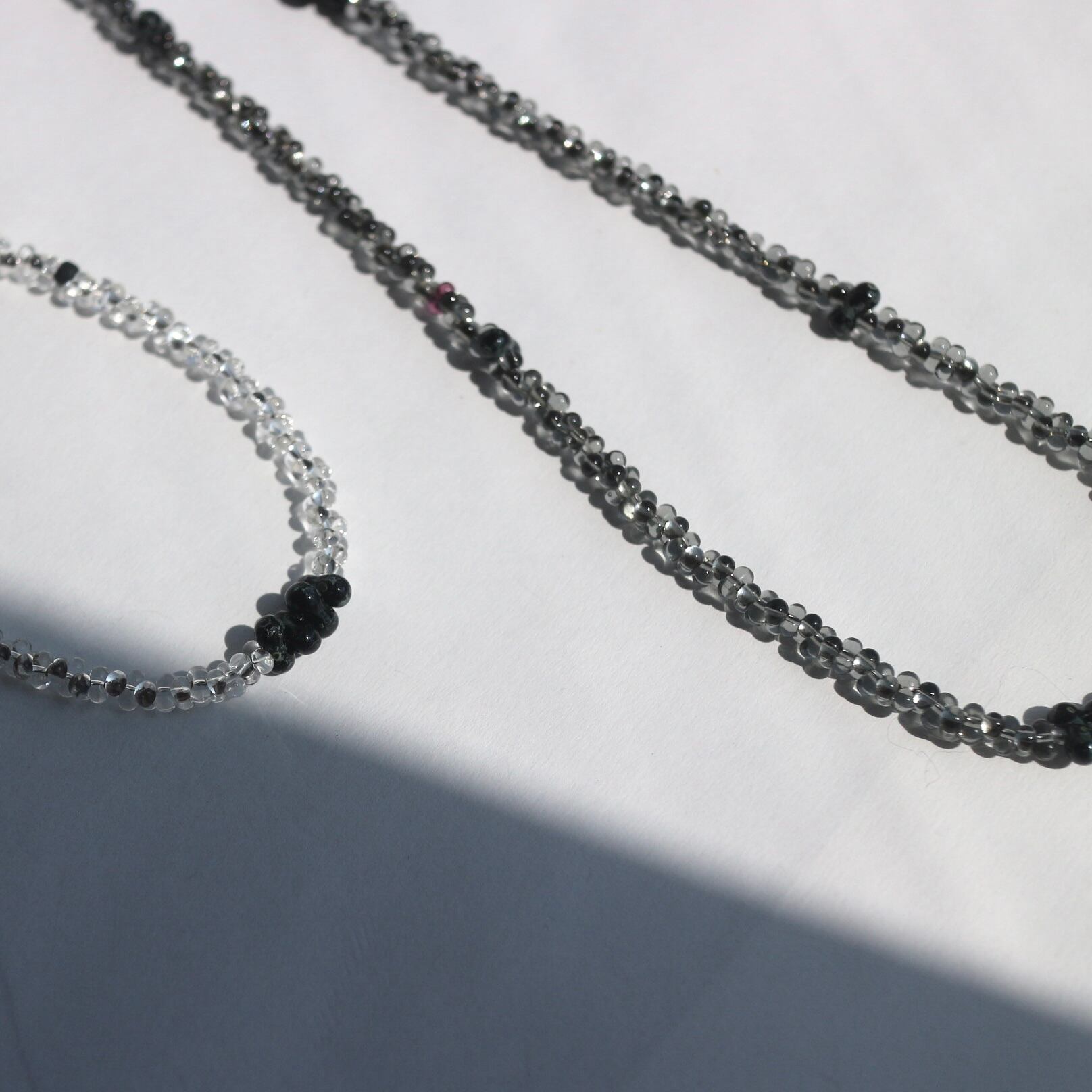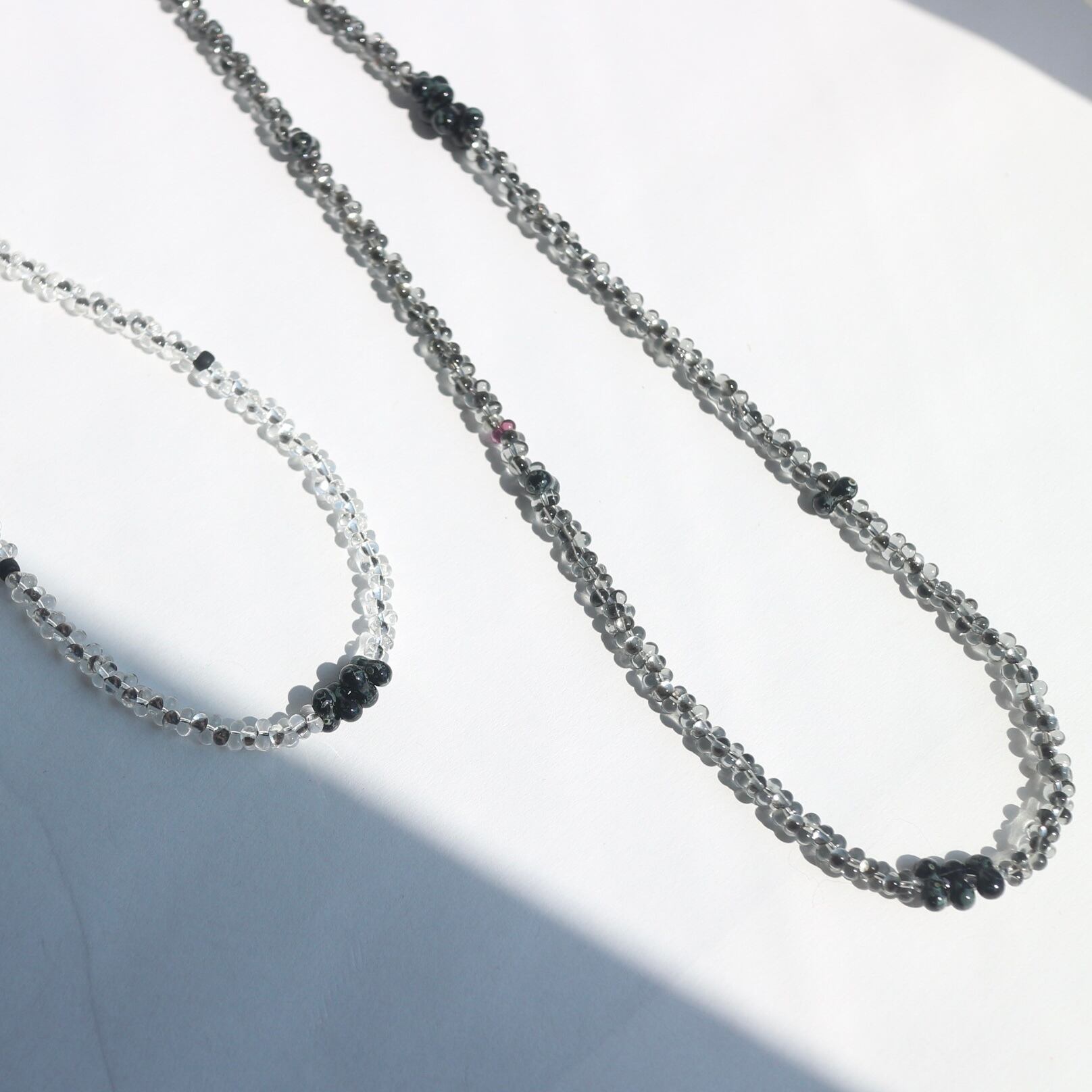 光にあたるとキラキラ光って夏のお洋服のポイントになります