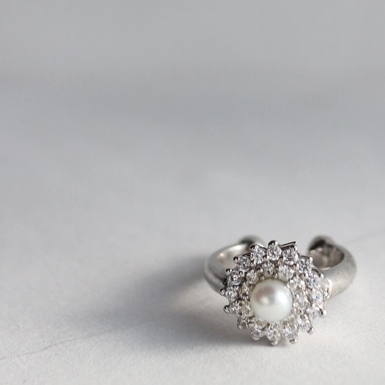 繊細なジルコニアがぐるりと囲む“光輪”デザイン。