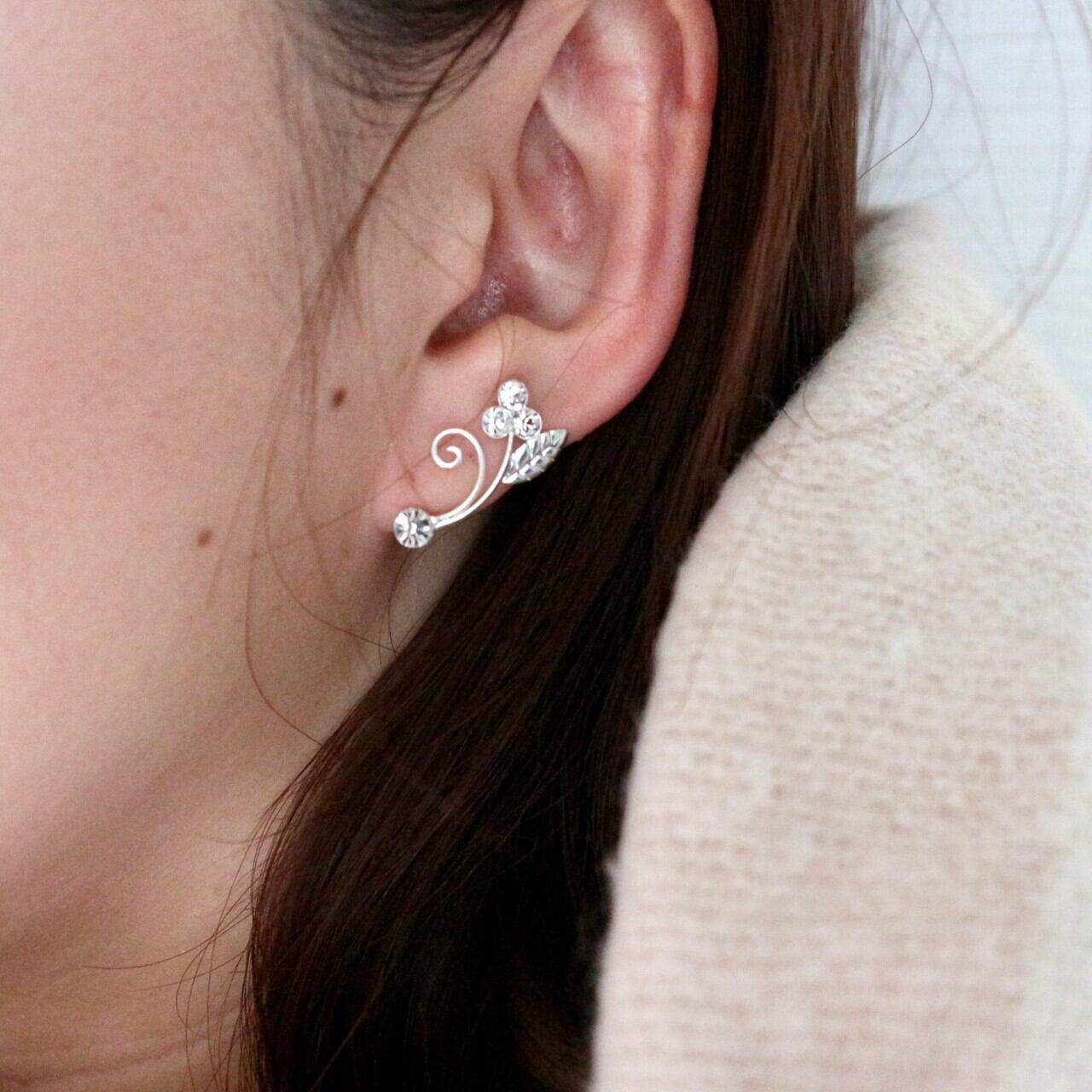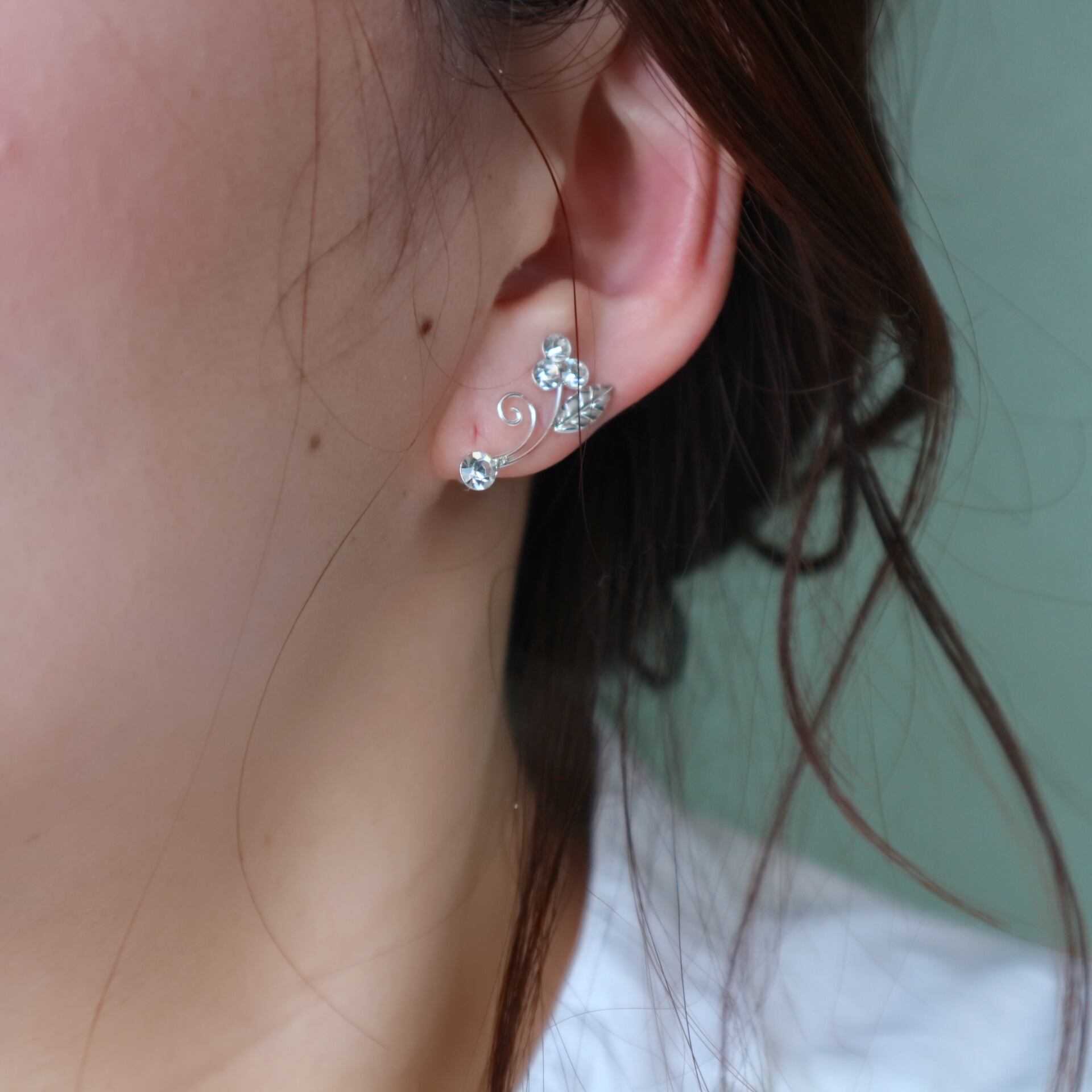 ビジューでできたアヤメ風のモチーフのイヤーカフ