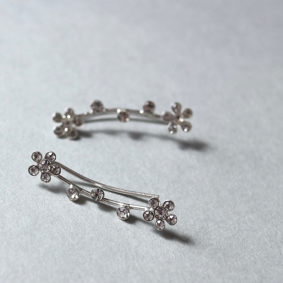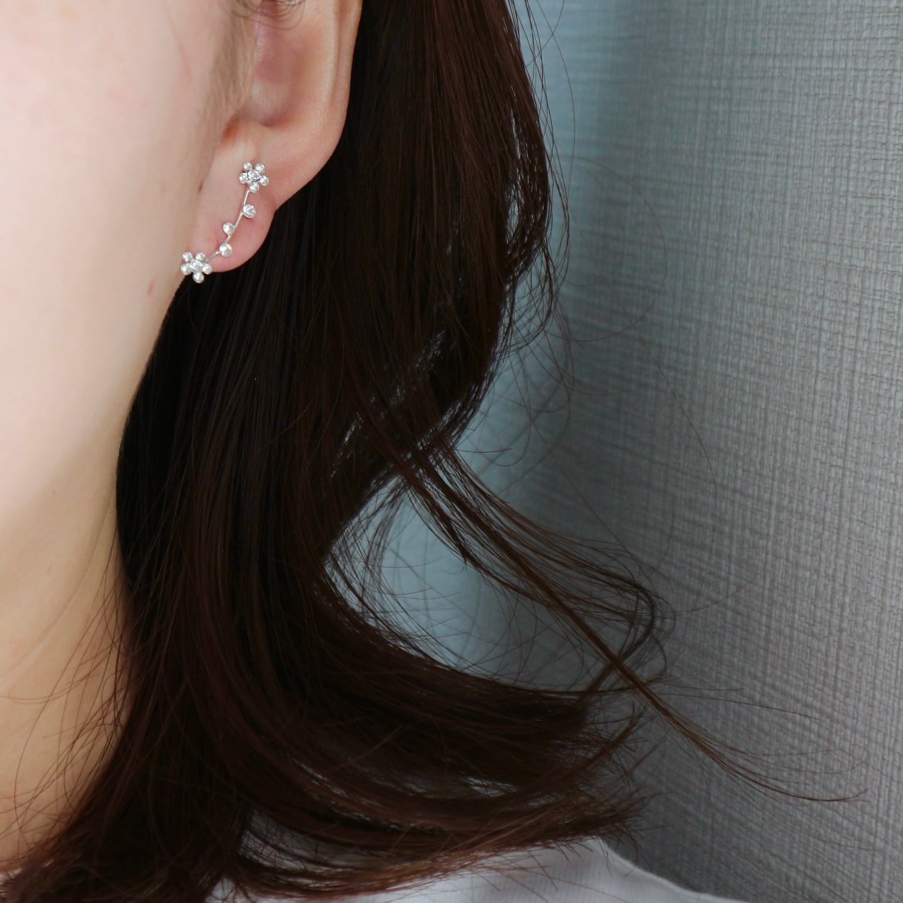 s925 きらきらダブルフラワーシルバーイヤーカフ / イヤリング / ピアス 金属アレルギー対応