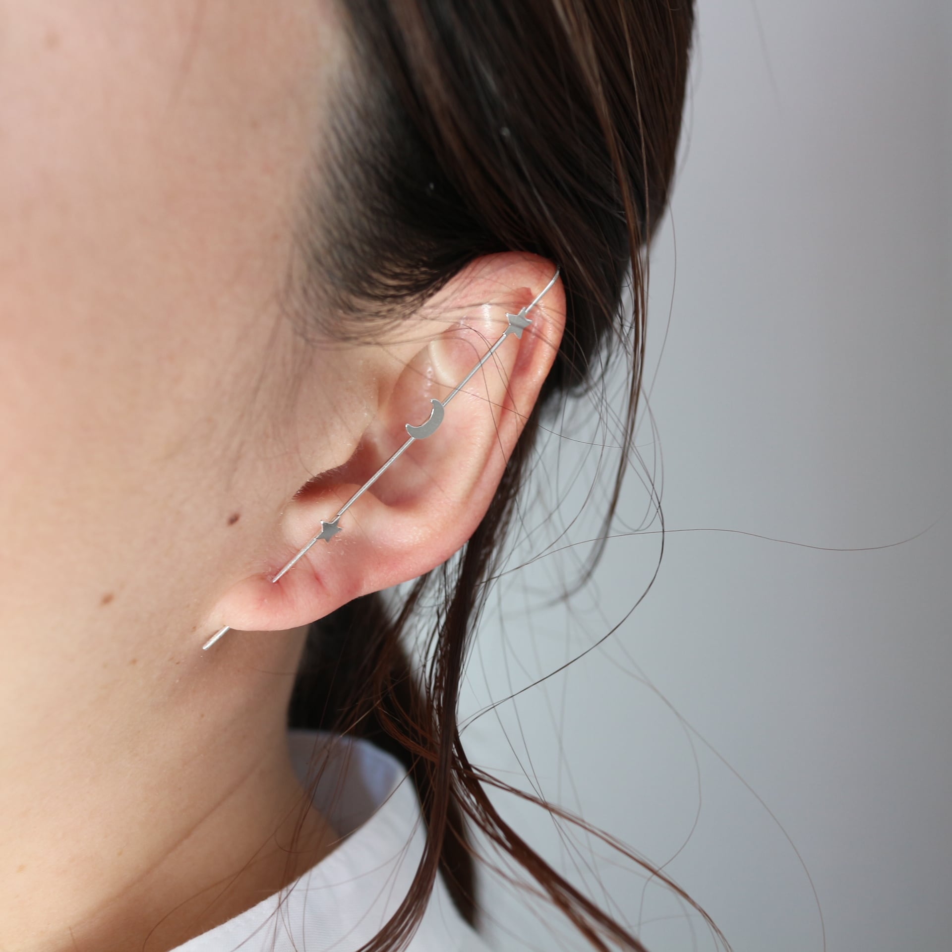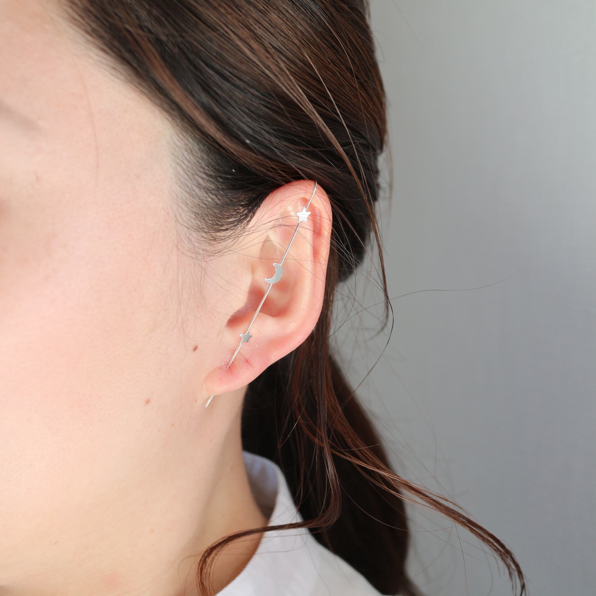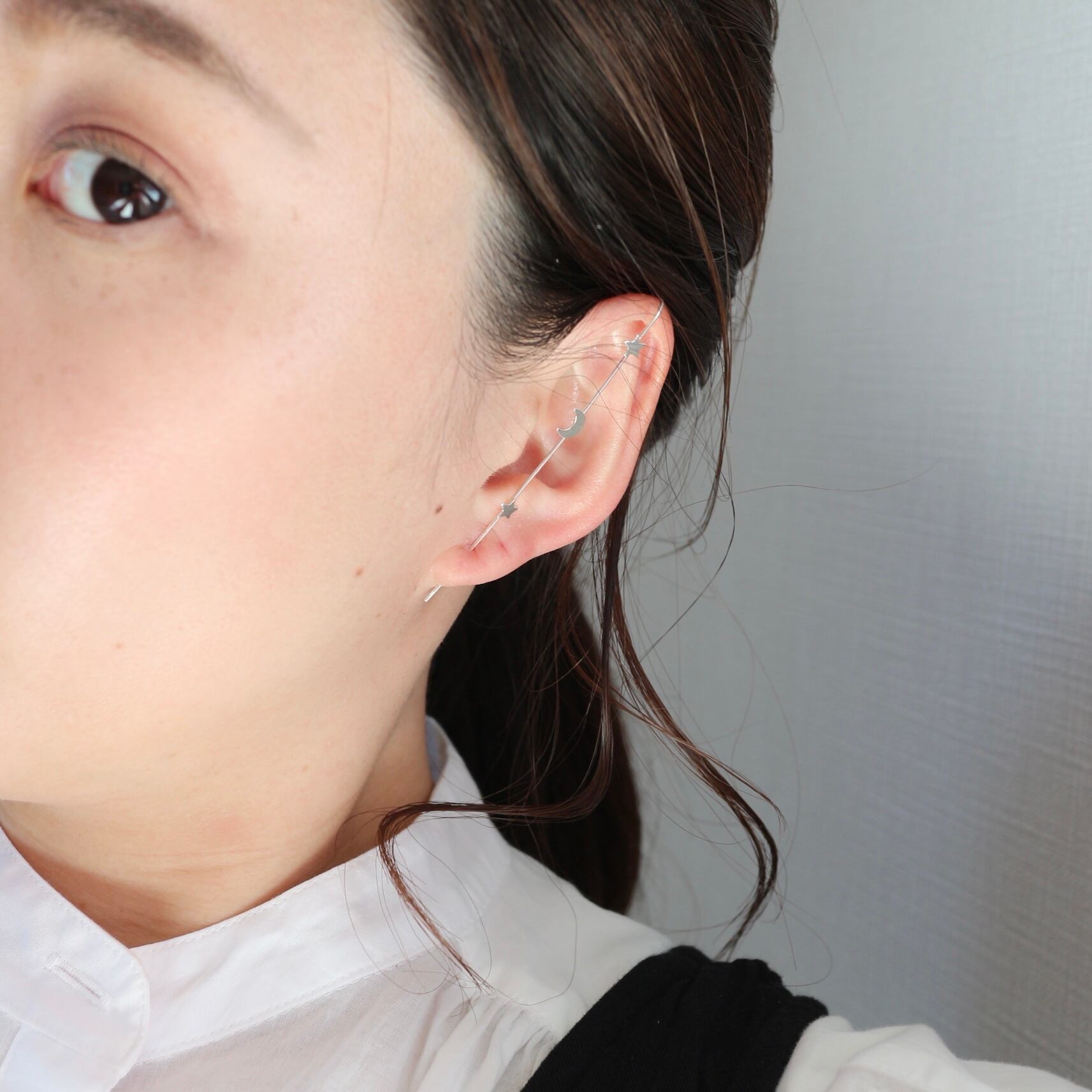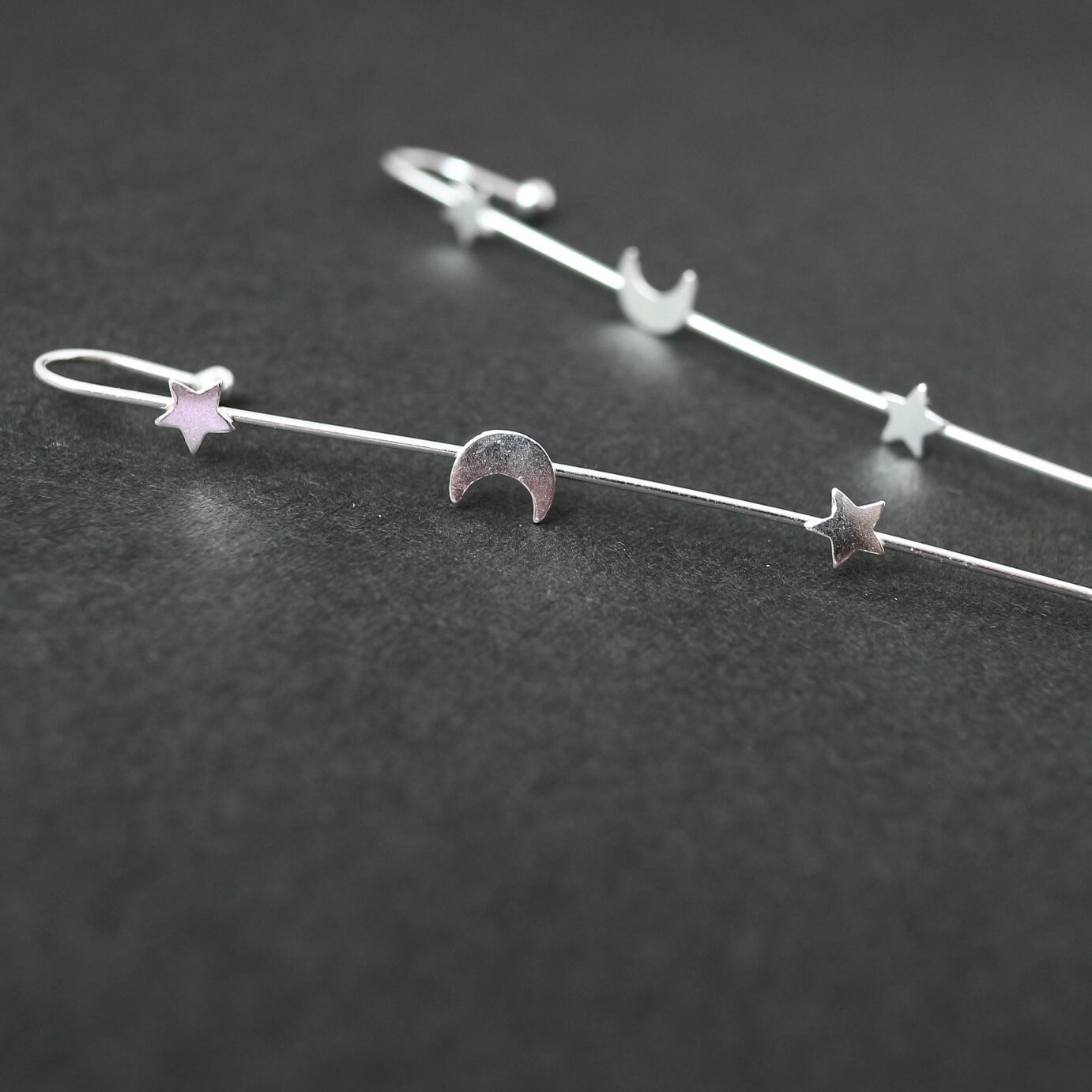 s925 夜空の星×月イヤーラップピアス シルバー925 金属アレルギー対応