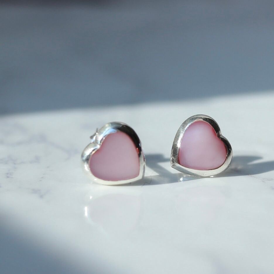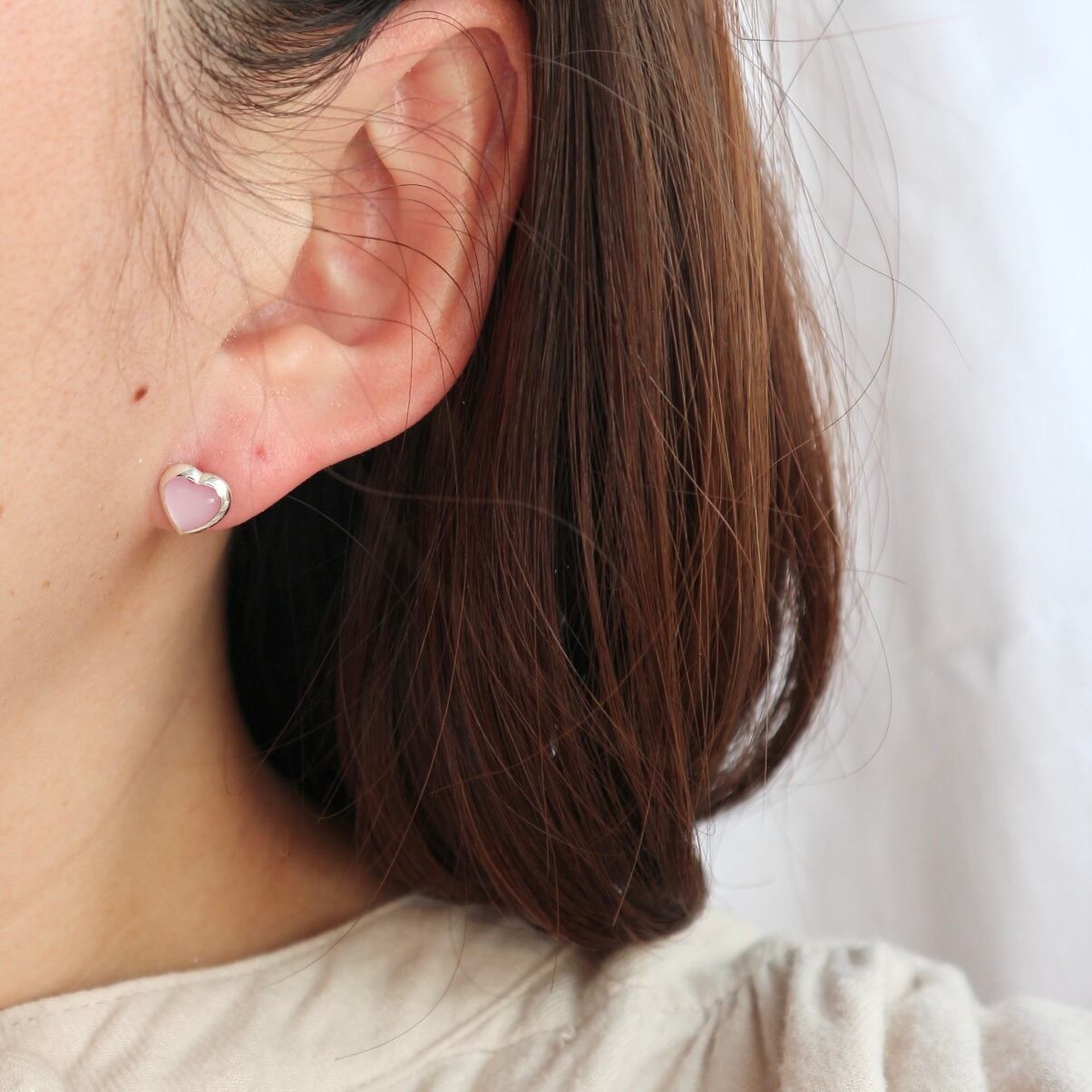 淡い桃色のピンクが可愛いハートモチーフピアス。