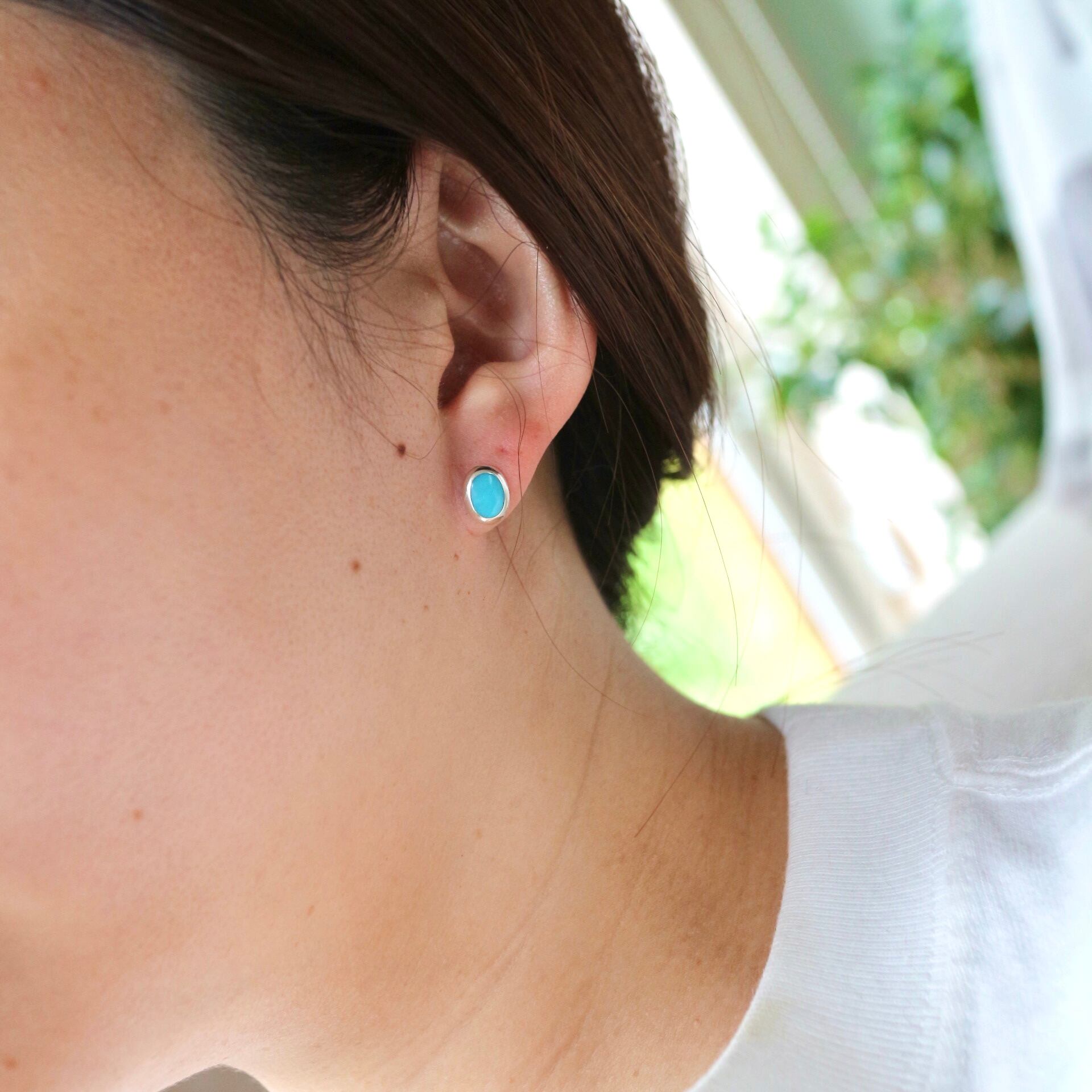 s925 大人かわいいマリンブルーサークルシルバーピアス