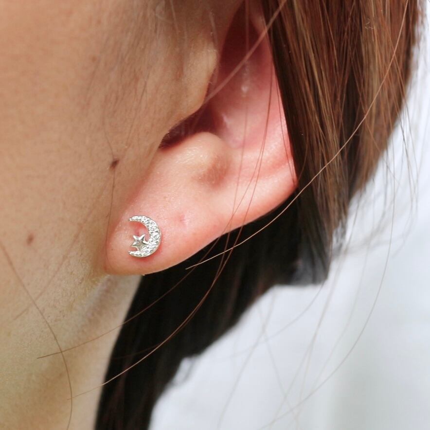 s925 ころんと小さいキラキラの星×月シルバーピアス