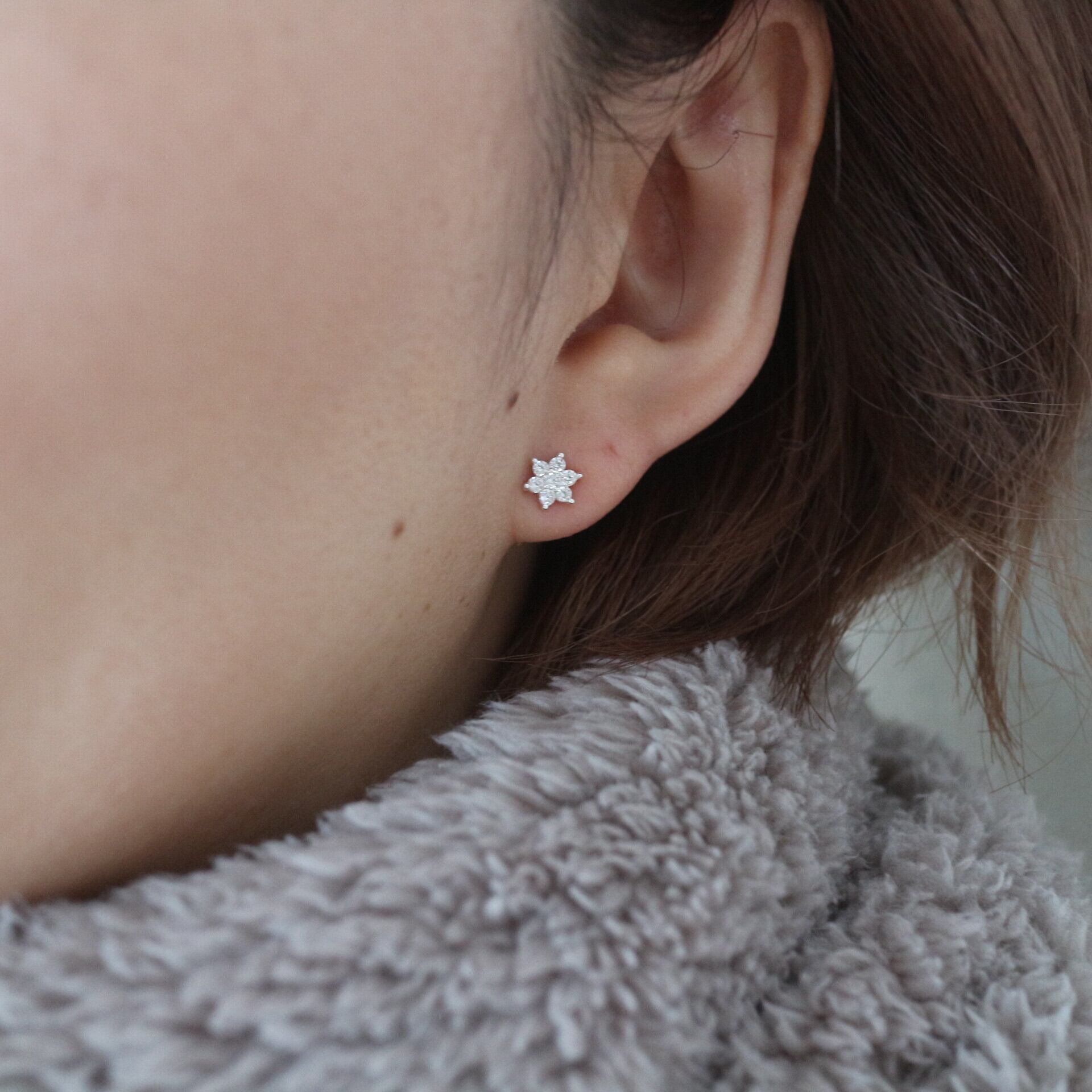 雪の結晶モチーフのワンポイントピアス