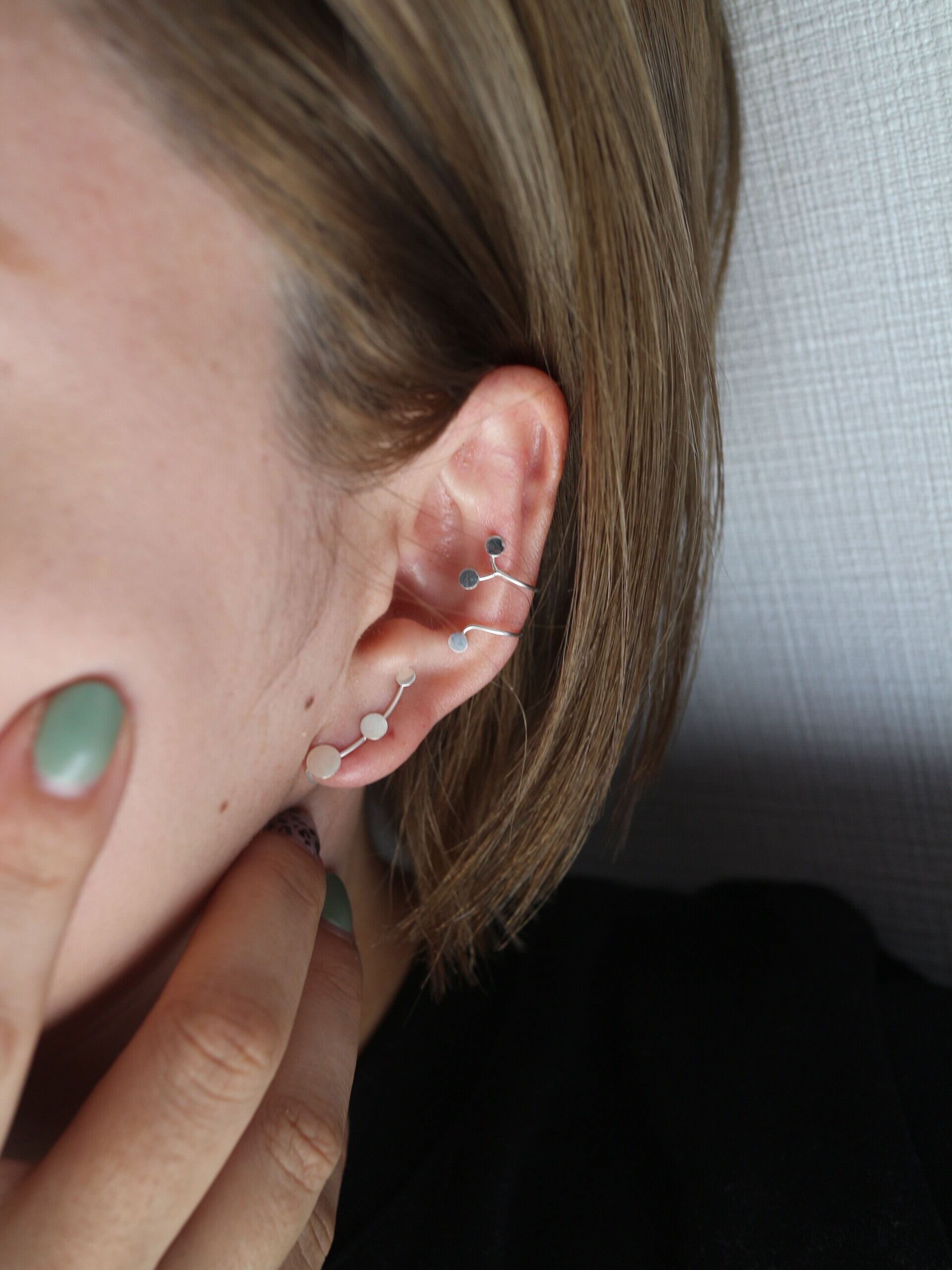 少し金具を広げて下から耳たぶにはめてご使用ください。